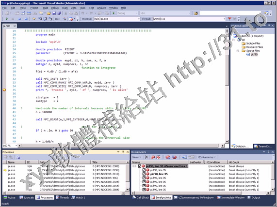 Fortran 編譯器與工具)完全集成到 Microsoft* Visual Studio* 2005 中。PVF 具