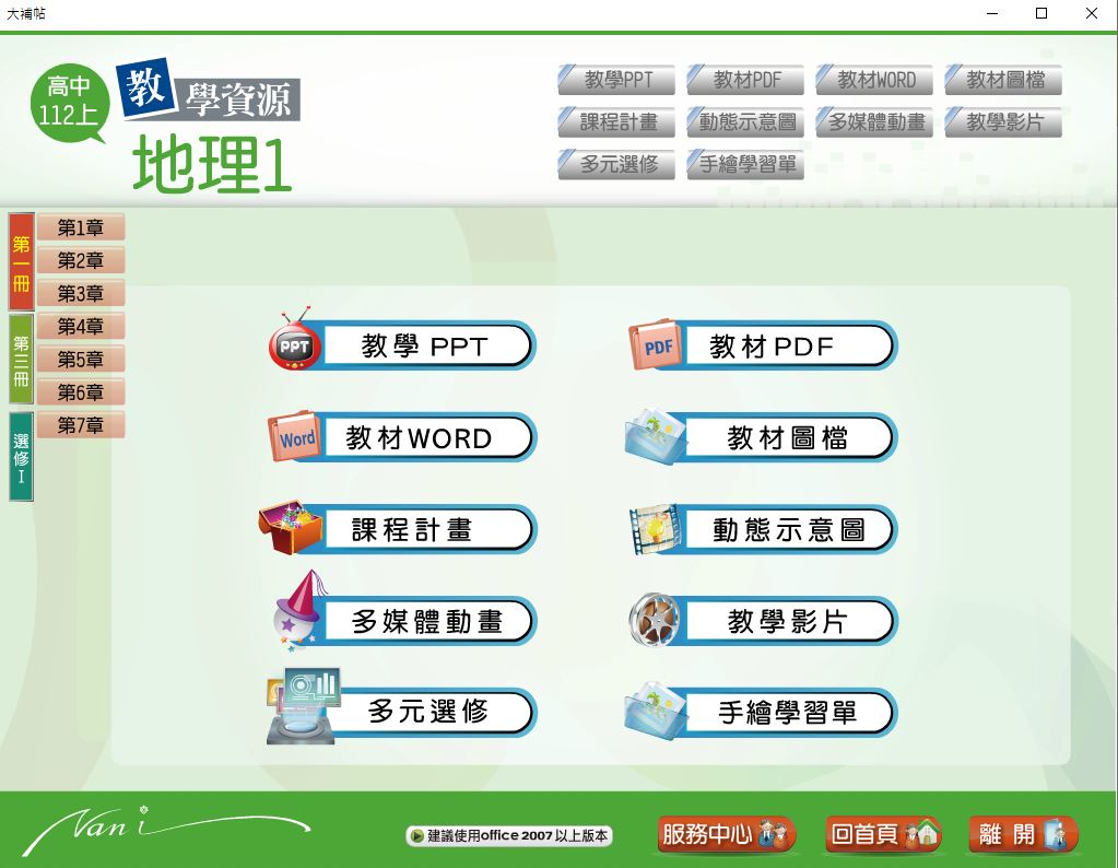 112學年上學期 高中大補帖 南一版 地理科(一、三、選修I) 教學光碟