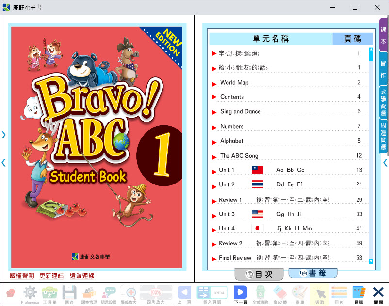 112學年上學期 國小 康軒版 英語電子書 Bravo!ABC 第1冊(含課本、習作含解答) 教學光碟