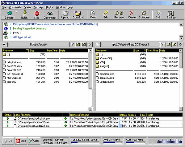 括了下載速度、傳輸位元組統計資料等等。3D-FTP就如同它的名字一般是個不折