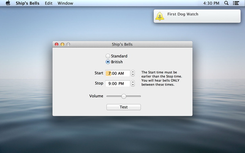 Finally, authentic ship bells on your Mac! Choose start and stop
