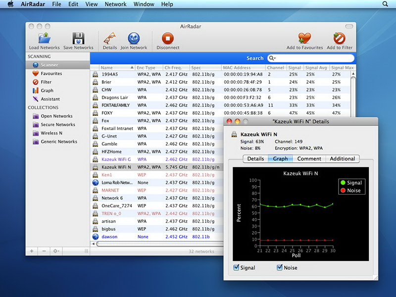 會說AirPort也可以做到這一點,但是我打賭AirRadar所提供的相關信息更詳細。