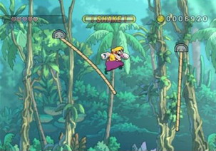 抓住,「搖晃」會使壞莉歐不斷繞著鐵棒迴旋,巧妙利用反作用力還能高高跳向天空